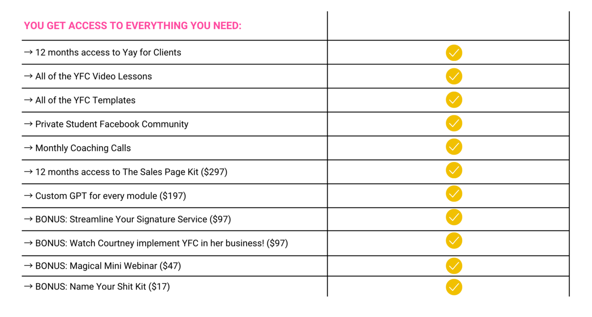 After 10+ years in the online education space, I’ve learned that refund policies tend to attract people who aren’t fully committed. That’s not the energy we bring into Yay for Clients.